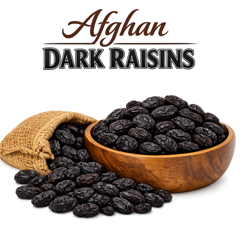 Discover the deep, caramelized sweetness of premium Afghanistan dark raisins, a timeless delicacy from the ancient vineyards of Afghanistan. Our Afghan dark raisins (also known as black raisins or kala kishmish) are naturally sun-dried from indigenous grape varieties in Kandahar, Helmand, and Zabul, resulting in a rich, intense flavor, wrinkled texture, and deep dark-brown to black hue. As a leading dark raisins supplier Afghanistan, we provide bulk dark raisins Afghanistan to importers, wholesalers, and food manufacturers across the UAE, Turkey, Europe, India, and global markets.